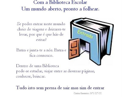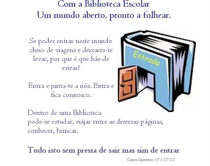 Júlia Teixeira de Azevedo, aluna do 11º C1, concebeu o seguinte anúncio de promoção da Biblioteca Escolar: