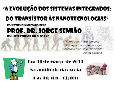 O tema a abordar, «A evolução dos sistemas integrados: do transistor às nanotecnologias» integra-se no âmbito do trabalho de projecto que os alunos Alexandre Matias, Hélio Valente, João Gonçalves, João Santos e Tânia Baptista têm estado a desenvolver e que tem como título: Evoluções Tecnológicas.